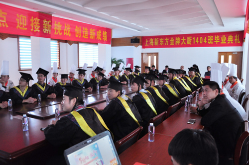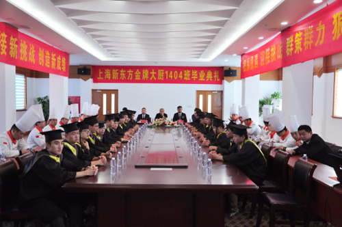 畢業(yè)典禮在學校各位領導的見證下如期舉行,上海新東方烹飪學校校長曹經(jīng)偉、教務處主任王杰、烹飪大師季兆明、行政辦主任王加方已經(jīng)就業(yè)辦主管張偉偉都到場參與這感人至深的畢業(yè)典禮。