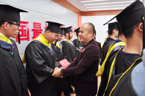 之后,季兆明大師與王杰主任都紛紛送出祝福。最后發(fā)言的是一校之長曹經(jīng)偉,曹校長在處理繁忙的校園事務之外依然對學校學生的學習生活最為關注。此次班級的畢業(yè)也讓他感慨萬千,他說,每一個學生都像自己的孩子,雖然沒有面面俱到參與他們的學習中但一直把學生放在心中最重要的位置。今天看到他們都如此優(yōu)秀表示很欣慰!