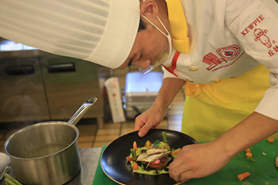 不禁想問,他們是如何創(chuàng)作出一批味美、型美、實用性高并順應西餐市場發(fā)展趨勢的好菜品的?看到他們嚴謹細致的制作過程,就知道他們正是在新東方烹飪教育嚴謹?shù)霓k學引導下,才練成了這一手好廚藝。