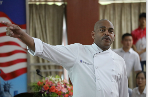 美國強生威爾士大學烹飪教育系主任、烹飪藝術學院院長杰瑞·拉努扎(Jerry Lanuzza )介紹美國強生威爾士大學