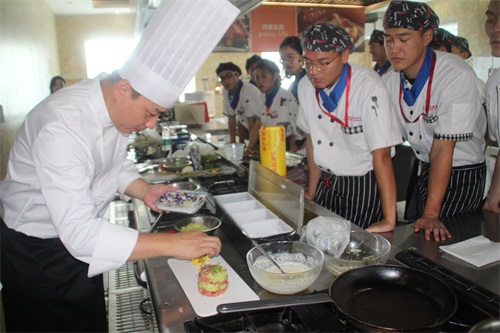 接下來同學(xué)們就薪資待遇方面的問題向“山楂樹”陳總監(jiān)咨詢,陳總監(jiān)也紛紛進(jìn)行了耐心且細(xì)致的解答,“山楂樹”公司基本薪資4500元,試用期為三個(gè)月,且在前期會有二十天的帶薪培訓(xùn),包括理論知識和儀容儀態(tài)等方面。在入職之后經(jīng)每通過一次考核,便可上升一個(gè)層級,增加薪資300元,公司代繳五險(xiǎn)一金。同時(shí),“山楂樹”公司也表達(dá)了他們對人才的要求,如廚藝技能、儀容儀表、言談舉止等。幾番交流下來,同學(xué)們也都流露出了濃厚的興趣。接著“山楂樹”大廚還在西餐教室為同學(xué)們演示了煙熏三文魚配牛油果的烹制,這道美食香氣撲鼻,口感鮮嫩,同學(xué)們都吃得贊不絕口。