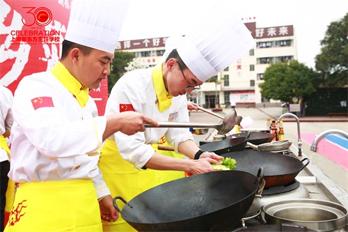 隨著比賽時(shí)間的到來,參賽的十名學(xué)員開始逐漸進(jìn)入比賽狀態(tài),他們分工明確,有條不紊地做自己家鄉(xiāng)的特色菜,這場(chǎng)比賽可不只是對(duì)基本功的考校哦,更多的是考察學(xué)員們團(tuán)隊(duì)合作和制作過程中的用心程度。