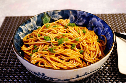 注意:撈出的面條一定要立即加蔥油攪拌,不然面會團(tuán)在一起。