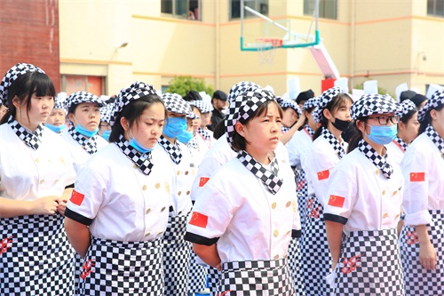 隨著活動的持續(xù)開展,金領(lǐng)大廚1608班的夏曙光同學上臺發(fā)言,他說:“我很榮幸能夠成為“主廚定向班”的一員并作為學生代表發(fā)言。在這里,我要對來參加這次活動,以及為此精心準備的企業(yè)和老師們表示衷心的感謝。”