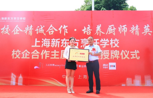 隨著曹校長的演講結(jié)束,在眾多企業(yè)和廣大師生的見證下,曹校長和各企業(yè)代表依次上臺,為2018年上海新東方“主廚”定向班正式授牌。