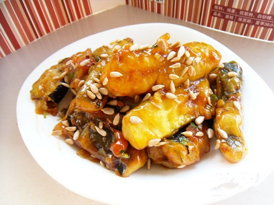 (5)調(diào)味芡汁的稠濃度要適宜,避免芡汁過少或過多,稠濃度過稀薄或過稠都會影響成菜質(zhì)量。原料經(jīng)炸制后瀝油,整塊、整條并剞有花刀造型形態(tài)美觀的、易碎易折的菜肴要采用澆淋調(diào)味芡汁的方法;形態(tài)較小、不易碎折的,可直接投入鍋中與調(diào)味芡汁一起攪拌裹附均勻芡汁。調(diào)味芡汁的濃稠度適宜時,取用適量熱油加入一起推攪均勻,呈油汁翻泡狀態(tài),即行業(yè)中稱的“活汁”,是較適宜澆淋調(diào)味芡汁或投料翻拌均勻的時機(jī)。但仍要注意,熱油的加入不可過多,以免澥汁。并注意出鍋及時,裝盤要美觀。