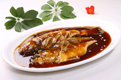 ?。?)鍋內(nèi)加油50克燒熱,加入蒜片、蔥、姜絲爆鍋,并加少量清湯、食鹽、料酒、醋、醬油等調(diào)味品,而后放入經(jīng)煎或炸過的原料,用微火收稠湯汁,使主料達到酥爛柔軟時,淋上香油,瀝凈湯汁改刀,平碼在盤內(nèi),再澆上余湯即成。
