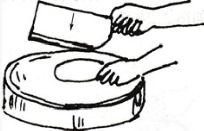 操作方法:兩手各持刀一把,力背朝下,兩刀呈八字形,刀上下交替用刀背捶擊原料。當(dāng)原料加工到一定程度時,刀刃向下,兩刀向相反萬向傾斜,用刀將原料鏟起歸堆,然后再行刀背捶直至達到加工要求為止。