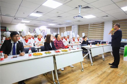 隨后,區(qū)域總廚何升華大師向同學(xué)們介紹了后廚的工作環(huán)境和工作內(nèi)容,并向同學(xué)們給予了殷切的期望,希望同學(xué)們能在校認(rèn)真學(xué)習(xí),積極參加學(xué)校各類比賽活動(dòng)。