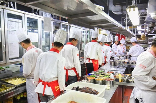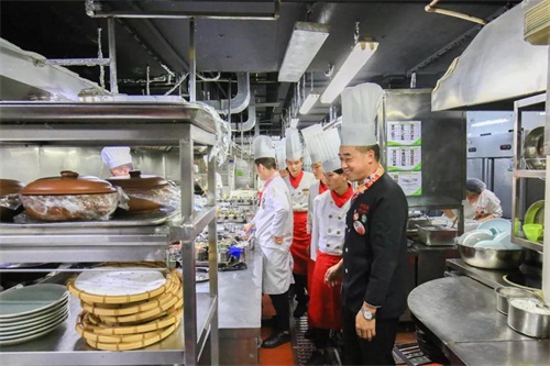 座談會(huì)后,同學(xué)們分批次參觀了后廚和前廳。