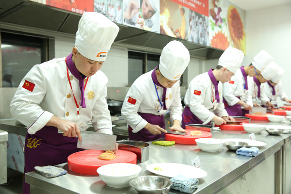 上海新東方烹飪學校學生切配練習