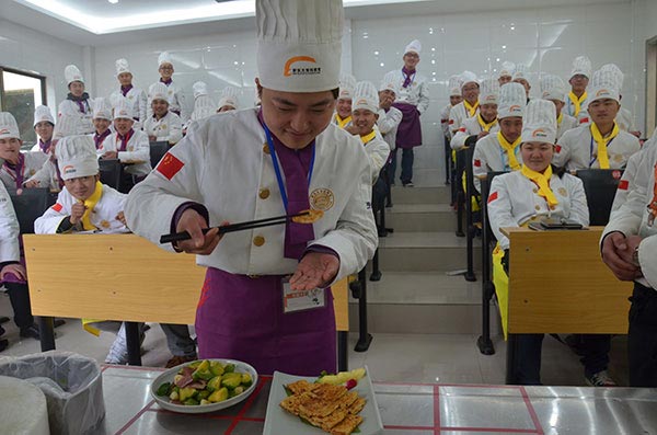 近日,云海肴華東區(qū)行政總廚李守祥來到上海新東方烹飪學(xué)校,為學(xué)生們展示廚藝,教同學(xué)們一些經(jīng)典云南菜的做法。