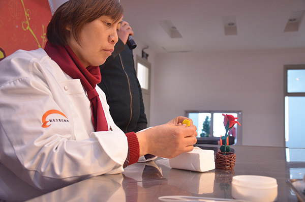 李大師在捏制玫瑰花