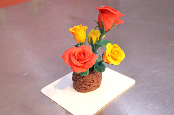 “面塑,俗稱(chēng)面花、禮饃、花糕、捏面人,是源于中國(guó)民間傳統(tǒng)藝術(shù)之一,以糯米面為主料,調(diào)成不同色彩,用手和簡(jiǎn)單工具,塑造各種惟妙惟肖的形象。”首先李大師給同學(xué)們介紹著面塑的歷史,用料及制作方法,李大師還特別講到:“面塑還分為食用和收藏兩種類(lèi)型,用于收藏的面塑會(huì)添加防腐劑,可以當(dāng)成工藝品保存很長(zhǎng)時(shí)間。今天所要做的玫瑰花籃主要用于觀賞,無(wú)需冷凍即可保存。”