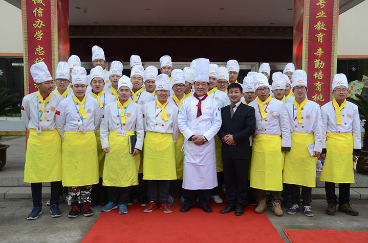 經(jīng)過兩年的烹飪學(xué)習(xí),金牌大廚班的同學(xué)們在今天向辛勤培養(yǎng)他們的老師交出了一份圓滿的答卷。他們用一桌桌豐盛的宴席,一道道媲美星級酒店的菜肴訴說著心中的感激之情。