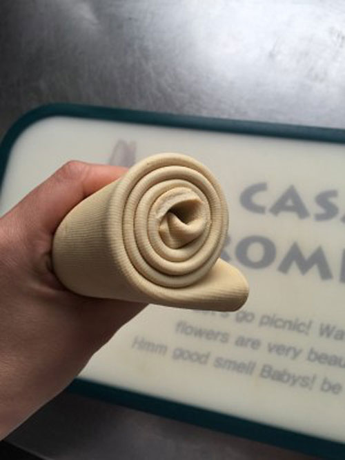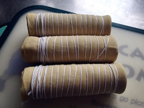步驟一:將豆腐皮洗凈控水,對折之后卷起來。