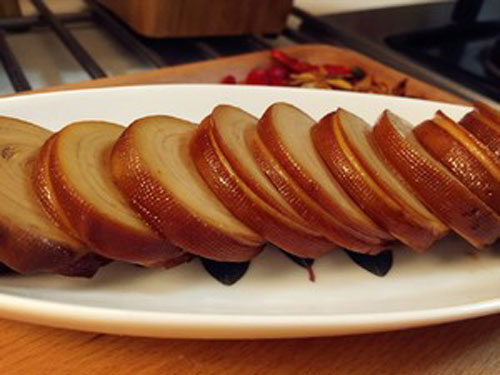 步驟六:將豆皮切成片放進湯汁上色撈出控汁,切片裝盤即可。