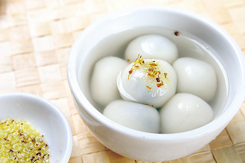 在下鍋前,應(yīng)用凈手微捏湯圓,使其外皮上略有裂痕,這樣下鍋煮透后的湯圓里外皆熟,不會(huì)夾生,且軟滑可口。