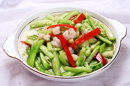 在炒絲瓜的過程中加入適量的海鮮,例如蝦及其他一些海鮮進行翻炒,海鮮的味道能有效的蓋住絲瓜的土腥味。
