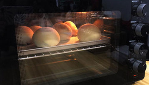 步驟五:包好后放入烤盤,蓋上保鮮膜進(jìn)行室溫發(fā)酵,然后撒上面包粉,預(yù)熱烤箱至180度,然后烤箱180度烤20分鐘左右即可。