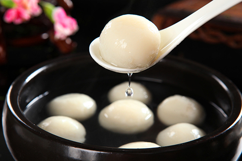 在湯圓下鍋前,應(yīng)用凈手微捏湯圓,使其外皮上略有裂痕,這樣下鍋煮透后的湯圓里外皆熟,不會夾生,且軟滑可口。