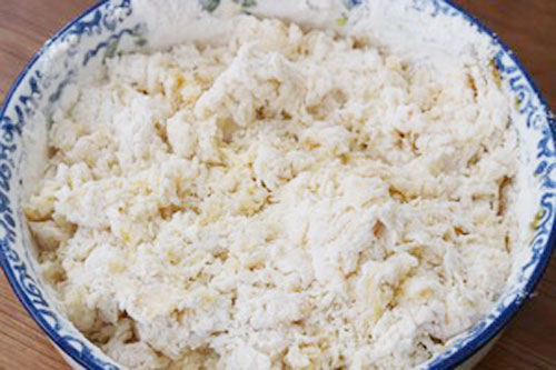 步驟二:加入面粉、奶粉,加入溫水?dāng)嚦尚鯛睢?/span>