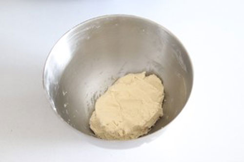 步驟三:用刮刀切拌至無干粉,戴上一次性手套,抓捏成團。