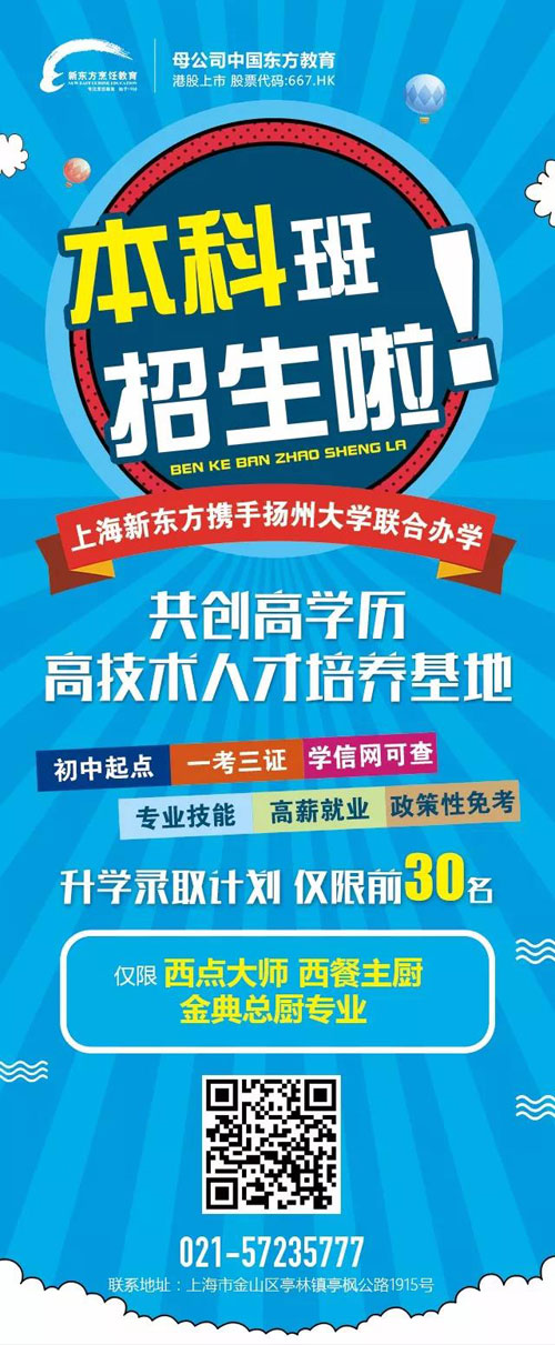 上海新東方烹飪學(xué)校攜手揚(yáng)州大學(xué),全力培養(yǎng)一個(gè)高技能高學(xué)歷的你!