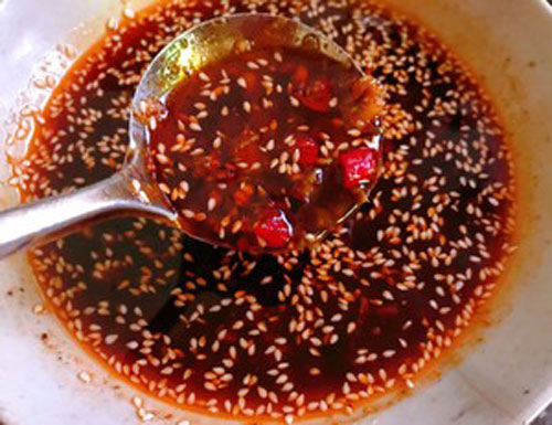 步驟四:開始調(diào)料汁,裝姜蒜小米辣的碗里加入煮雞的原湯,依次加入所有作料。
