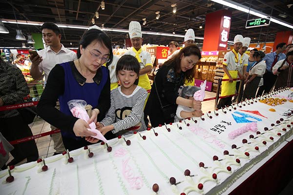 六一兒童節(jié)到啦,又到了小朋友們歡呼雀躍的節(jié)日,這天上海新東方烹飪學(xué)校攜手家樂福給小朋友們一大大的驚喜,長達(dá)6米1的蛋糕,你有沒有被萌到呢?