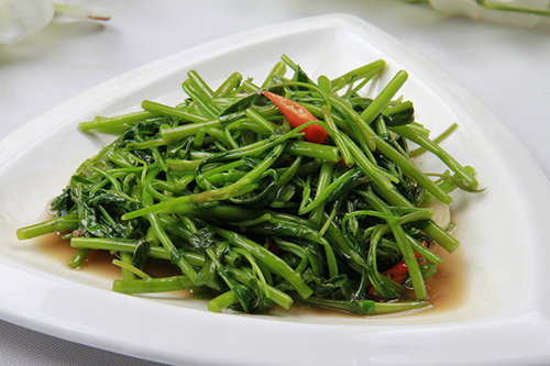 空心菜焯水的熟度以控制在七八成為宜,盡量縮短后期炒制的時(shí)間。