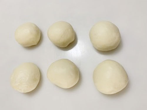 步驟二:把面團(tuán)滾圓,室溫進(jìn)行基礎(chǔ)發(fā)酵至兩倍大,發(fā)酵完成,把面團(tuán)均分六份,滾圓松弛15分鐘左右。