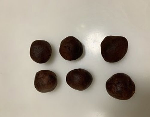 步驟三:松弛的時(shí)候,稱35克,6個(gè)豆沙,滾圓備用。