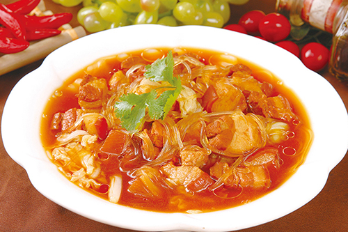 2、先用大火鎖住肉中的蛋白質(zhì),之后小火慢燉,可以保證豬肉的口感;