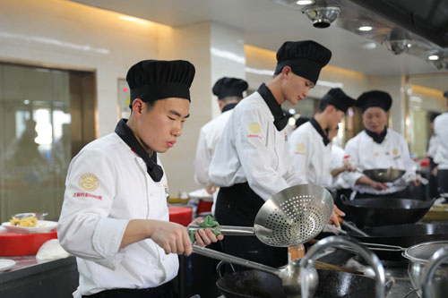 相關(guān)數(shù)據(jù)顯示,伴隨著我國(guó)餐飲業(yè)的飛速發(fā)展,急需一大批高素質(zhì)、技術(shù)強(qiáng)的廚師人才,這為廚師專(zhuān)業(yè)的學(xué)生提供了廣大的就業(yè)市場(chǎng)。相對(duì)其他技術(shù),烹飪技術(shù)門(mén)檻較低,易學(xué)、易懂、上手快。根據(jù)上海新東方烹飪學(xué)院就業(yè)追蹤服務(wù),兩年制川菜廚師專(zhuān)業(yè)學(xué)子畢業(yè)后掌握一手熟練的烹飪技藝,可以勝任餐飲企業(yè)的后廚工作。