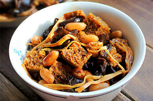 黑木耳30克、干香菇10、朵花生仁(生)50、克烤麩2片、干黃花菜1小把