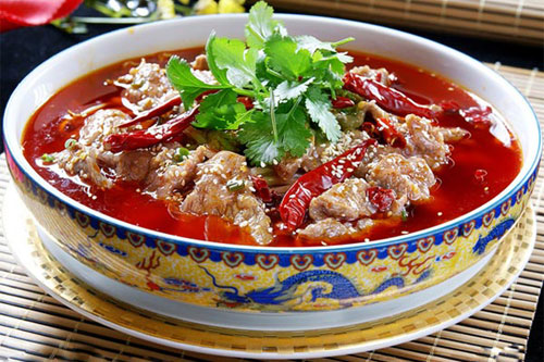 2 、鍋中放油燒至120度,下泡辣椒末、姜片、蒜片、蔥段炒香、下湯、雞粉、料酒、胡椒粉熬出香味、下金針菇、牛肉片燒熱起鍋、撒干辣椒節(jié)、芝麻、淋上170度的熱油即成。