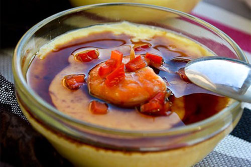 8、開鍋后將蝦仁放在蒸蛋上面,淋生抽和香油。