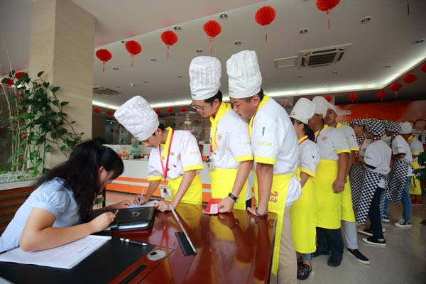金牌大廚專業(yè)新生在老師的帶領(lǐng)下井然有序的參加抽獎活動??吹角懊娴耐瑢W(xué)都抽到了大獎,大家都滿懷,躍躍欲試。偷偷告訴你,這只是其中一撥新生哦!