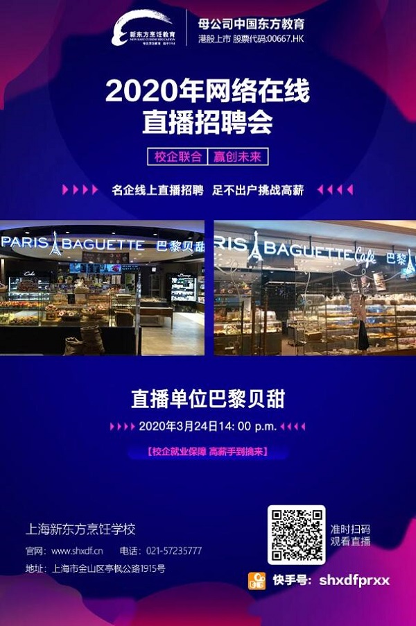 PS:近日來,新東方烹飪教育·上海校區(qū)已成功舉辦多次直播招聘會(huì),接下來還會(huì)有更多優(yōu)質(zhì)名企酒店和大家在線相見,請(qǐng)同學(xué)們務(wù)必關(guān)注并及時(shí)參會(huì),為日后就業(yè)提前做好信息收集和充足準(zhǔn)備!