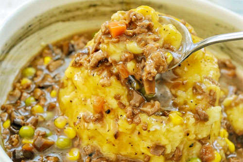 制作食材:土豆 5-6個(gè)、混合蔬菜粒 適量、肉末 200克、水發(fā)香菇 7-8朵、姜蒜末 適量、黑胡椒粉 適量、鹽 1勺、糖 1勺、生抽 2勺、老抽 1勺、蠔油 2勺、水淀粉 半碗