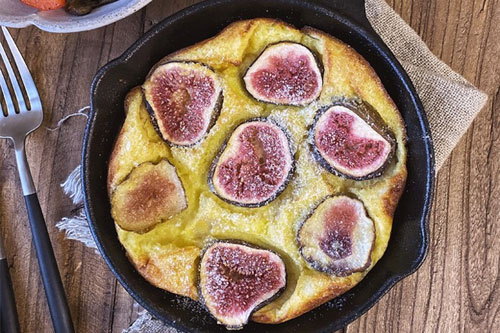 制作食材:低筋面粉 20g、雞蛋 1個(gè)、牛奶 70g、杏仁粉 5g、細(xì)砂糖 20g、椰子油(涂抹鍋體) 10g、細(xì)砂糖(涂抹鍋體) 3g、無(wú)花果 2-3個(gè)、糖粉 2g