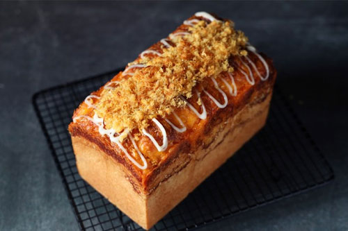 11、放進(jìn)預(yù)熱好的烤箱內(nèi),最下層位置,上火:175度,下火:200度,三能低糖吐司盒,烘烤30分鐘,出爐后在頂部擠上沙拉醬,然后在中間鋪上一層肉松即可。