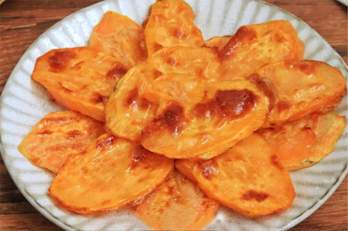 1、紅薯斜切片。