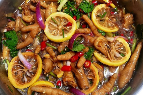 制作食材:雞爪 1000克、洋蔥 1個(gè)150克、小米椒 25個(gè)、檸檬 2個(gè)、百香果 2個(gè)、飲用水 400克、芹菜 4根、香菜 一小把、小蔥 4根、獨(dú)蒜 20個(gè)、醋 90克、生抽 90克、老抽 15克、白糖 55克、鹽 60克、花椒油 30克、姜片 5片