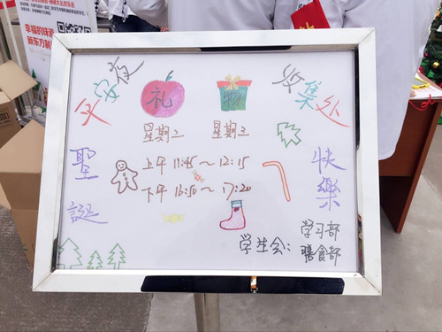 嚴(yán)寒冬季,學(xué)生會(huì)的gege們?yōu)榱诵』锇閭兊男腋R彩瞧戳耍诓賵?chǎng)服務(wù)已一上午,前來送禮物的同學(xué)絡(luò)繹不絕!