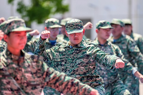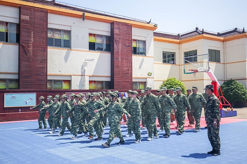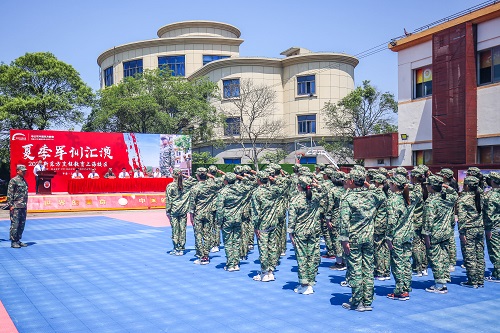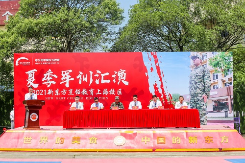 初夏微燥,陽光當空,新東方烹飪教育上海校區(qū)田徑場盛迎2021級“三教三訓”之新生軍訓(匯演)。