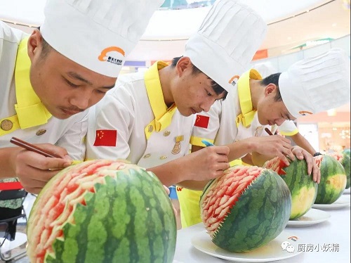 雕刻,作為一種刀尖上的藝術(shù),不僅是宴席上不可或缺的裝飾,更考驗了廚師的功底。完成它不僅需要嫻熟的刀工,更需要豐富的想象力,新東方烹飪教育(上海校區(qū))的學(xué)生用自己的作品證明了實力。