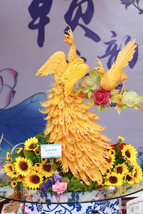 新東方烹飪教育(上海校區(qū))的學(xué)生可以將滾圓的南瓜變成踏浪的麒麟、沖天的飛龍,將普通的蘿卜變成正在展翅的雄鷹,還可以是羽色華麗的孔雀.....