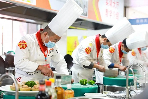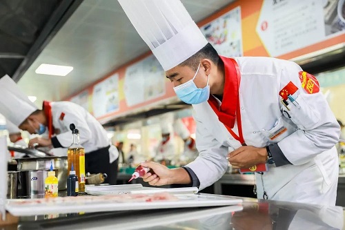 中餐組參賽老師們在規(guī)定的時間里完成比賽菜肴烹調(diào),要求參賽作品規(guī)范又不失個性;能把個人的技能展現(xiàn)出來,更加注重老師們對于菜品的創(chuàng)新能力。